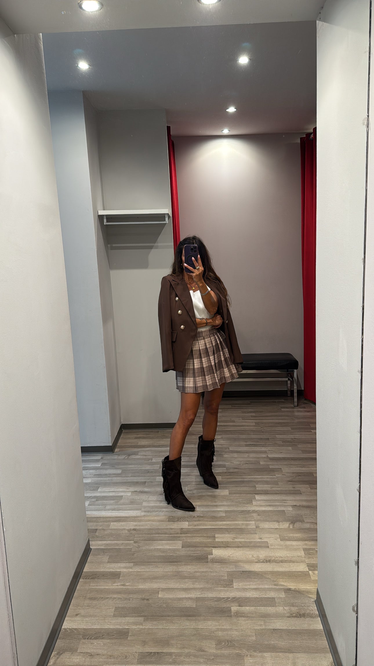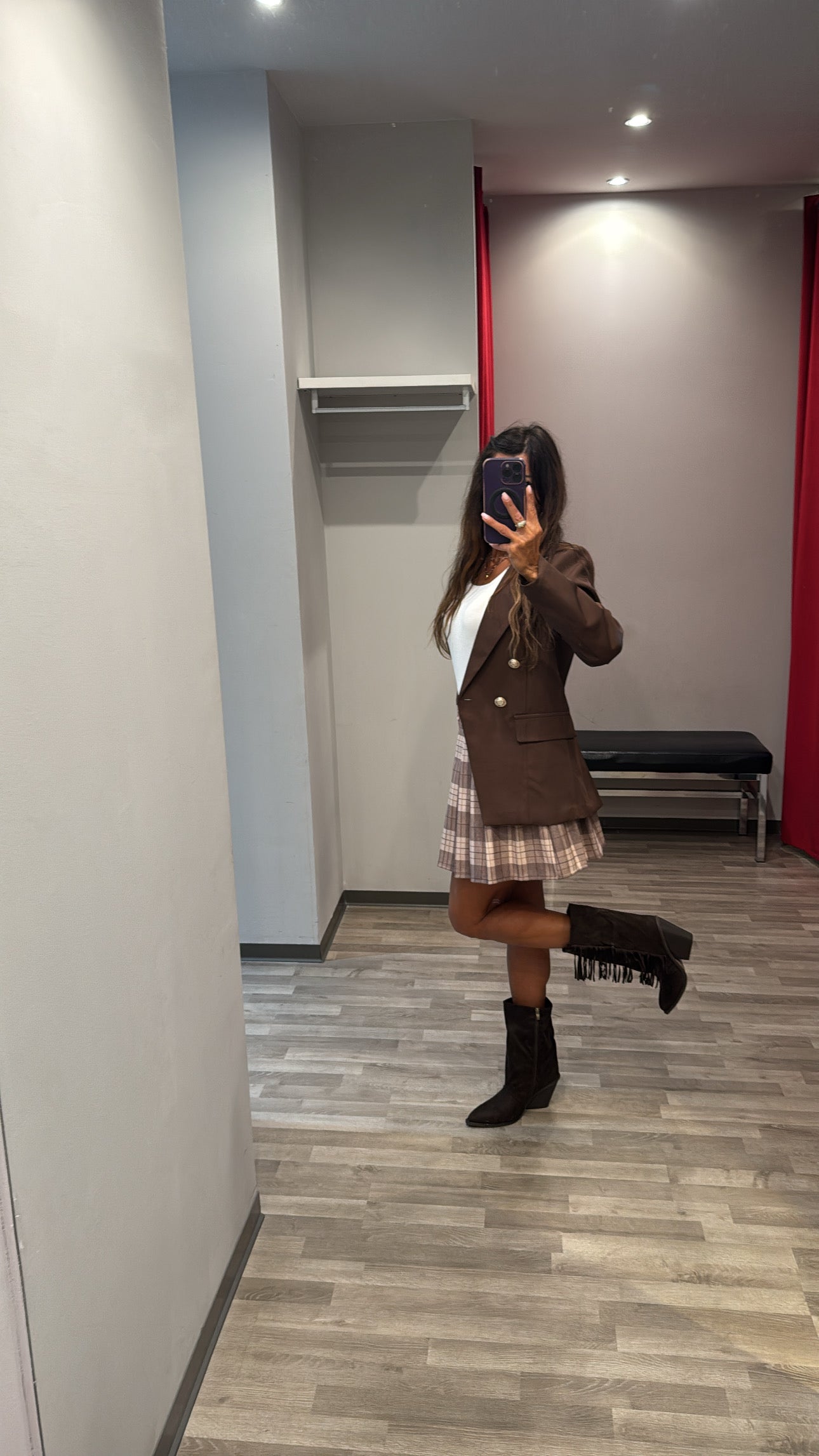 BLAZER MARRONE CON BOTTONI ORO STILE BALMAIN , SFIANCATO E DOPPIOPETTO