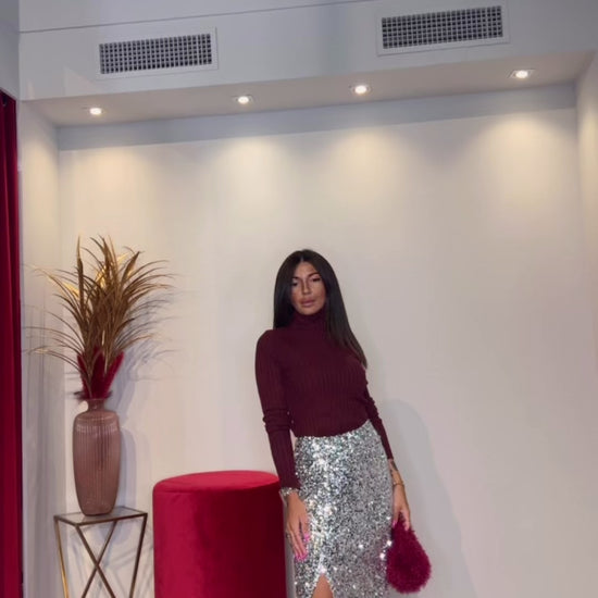 LONGUETTE IN PAILLETTES ARGENTO CON SPACCO ED ELASTICO IN VITA