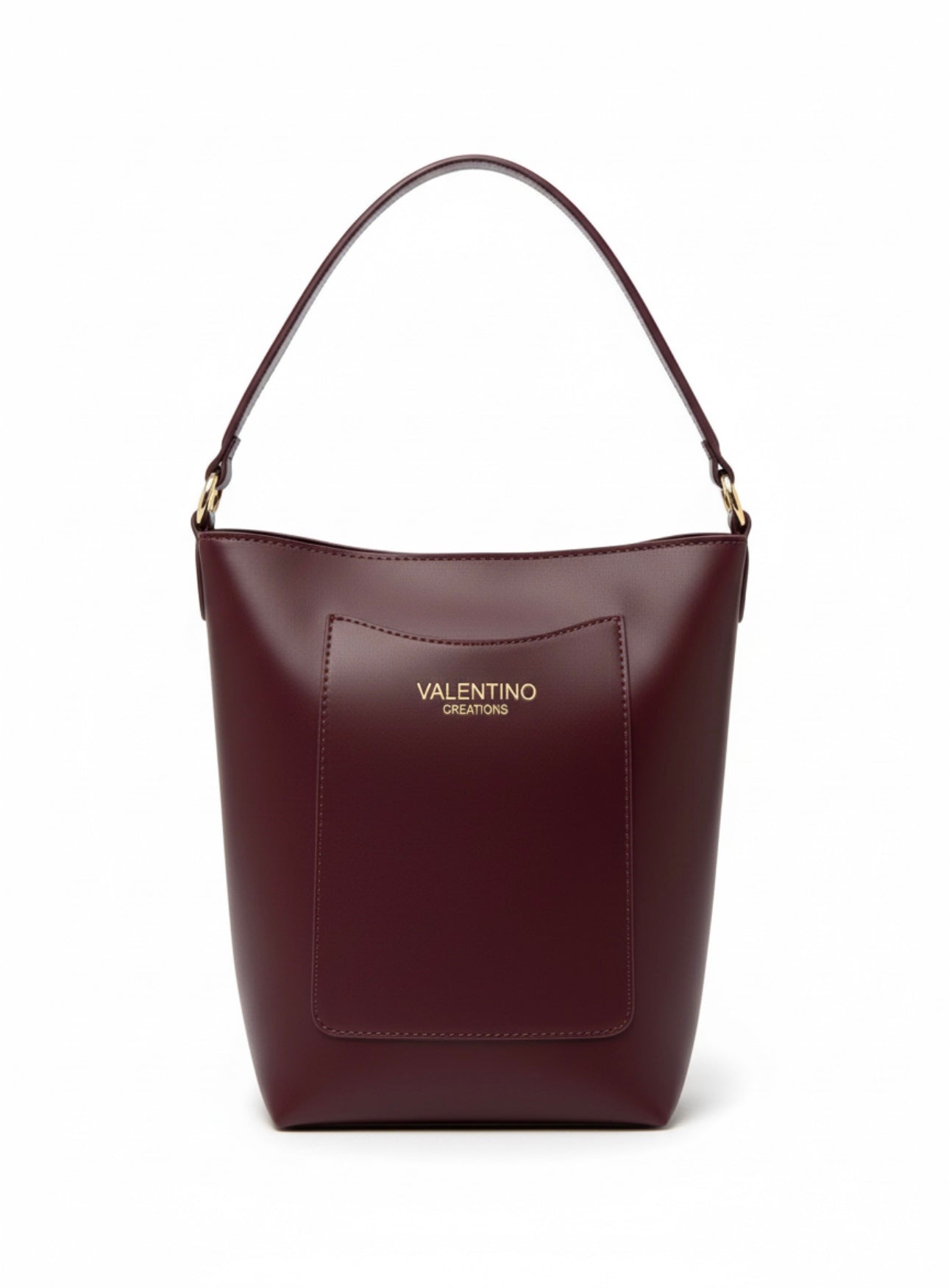 BORSA IN PELLE BORDEAUX A FORMA DI SECCHIELLO ,MADE IN ITALY BRAND VALENTINO CREATIONS