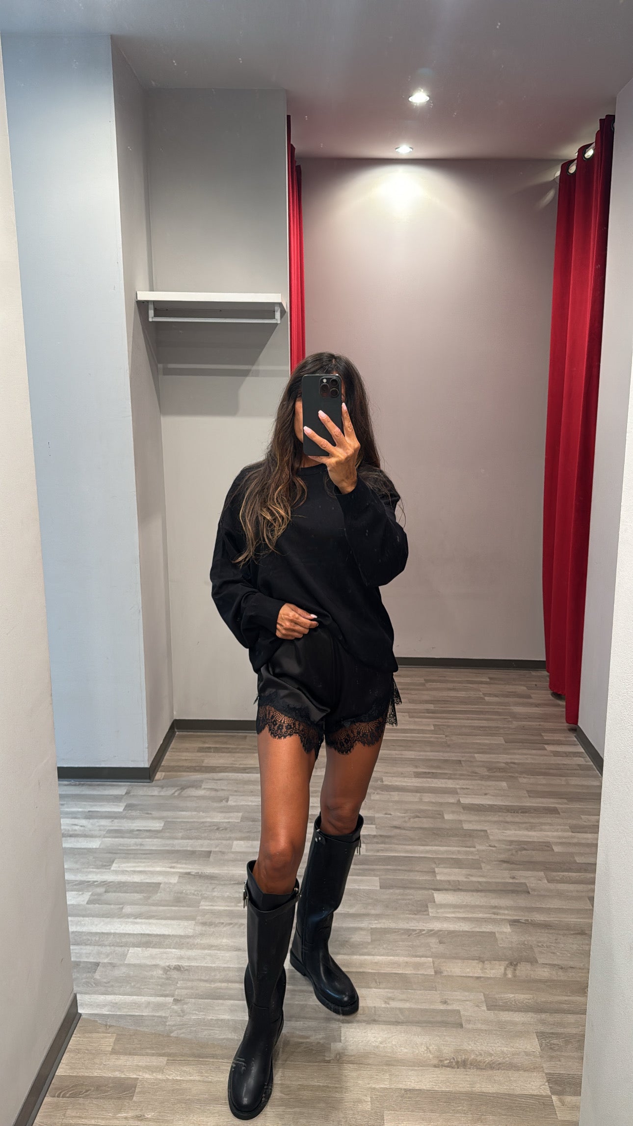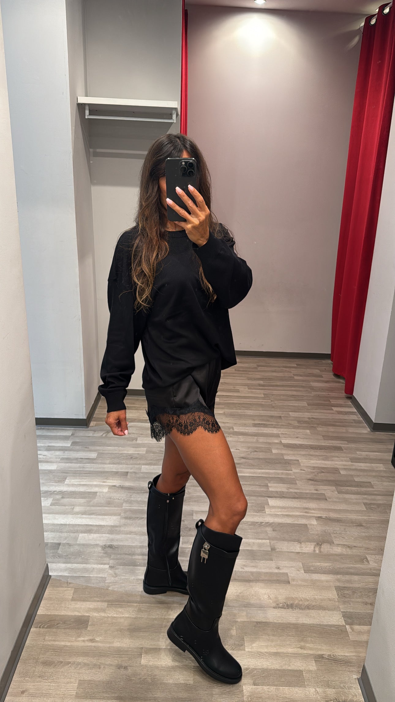 STIVALE NERO IN ECOPELLE MORBIDISSIMA CON IL GAMBALE ALTO E TACCO BASSO E FIBBIA A LATO CON LUCCHETTO ARGENTO SIMIL GIVENCHY